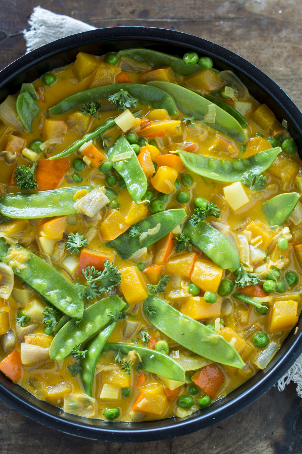Kürbiscurry mit Erbsen und Kokosmilch