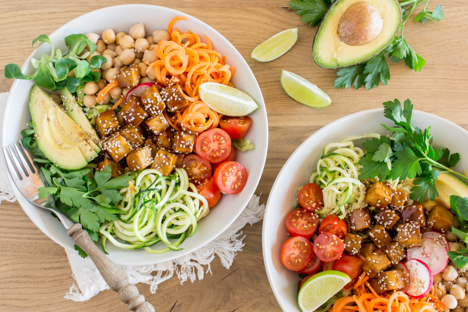 Die heutige Veggie Bowl überzeugt nicht nur mit Ihrer vitaminreichen Vielfalt, sondern auch mit dem gewissen Extra - nämlich Teriyaki Tofu mit Sesam als raffiniertes Topping!